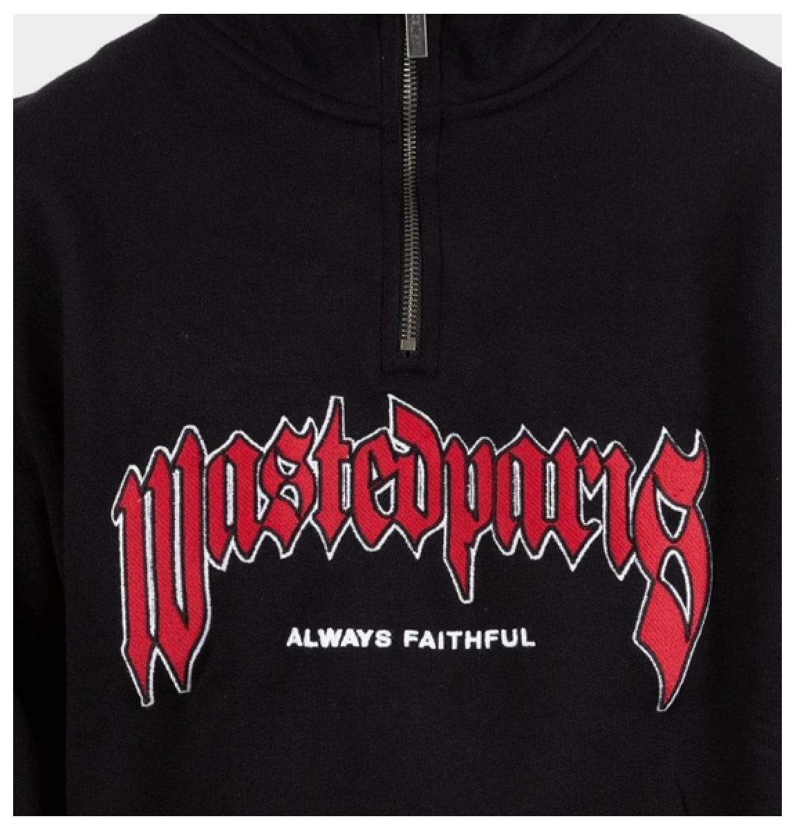Má volný střih a vysoký límec se zapínáním na zip. Logo z umělé kůže se saténovým stehem po celém obvodu.