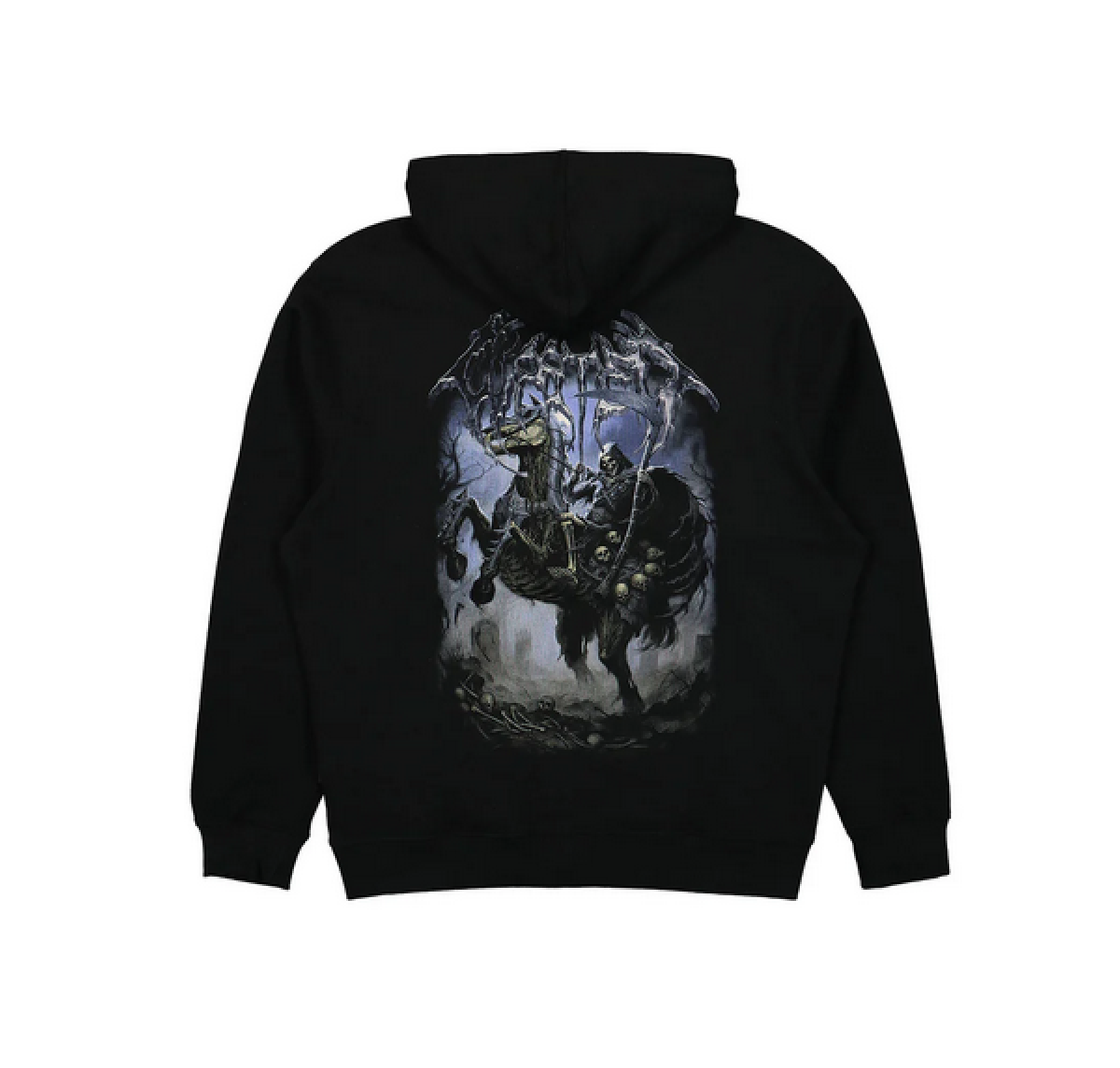 the Ashes zip-up hoodie is made of thick fleece. It has a loose fit, a front zip and a screen-printed design is displayed on the front and back.