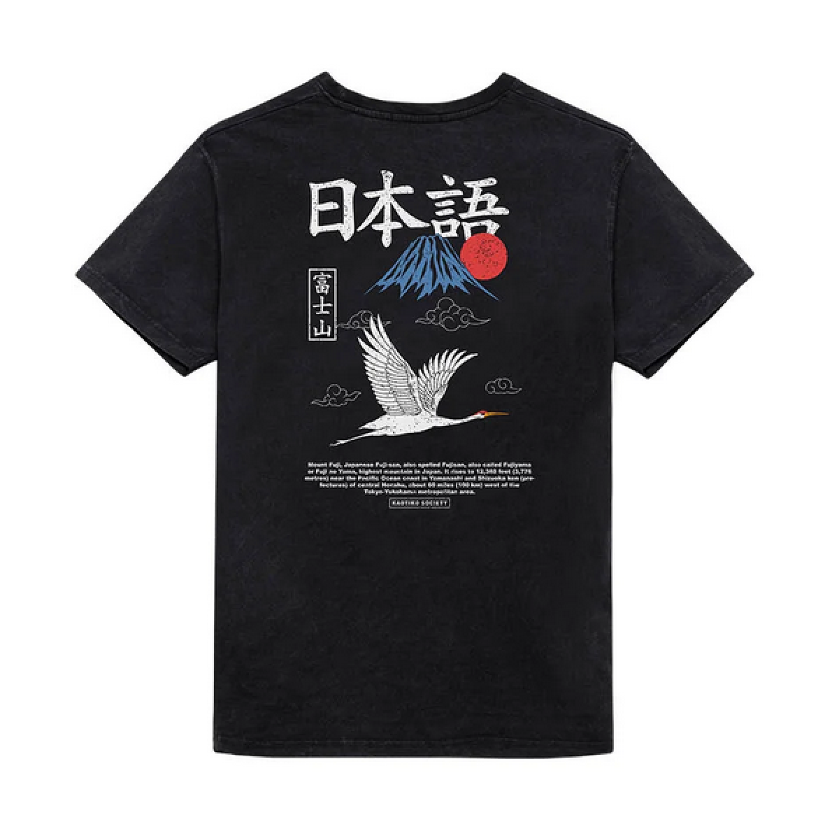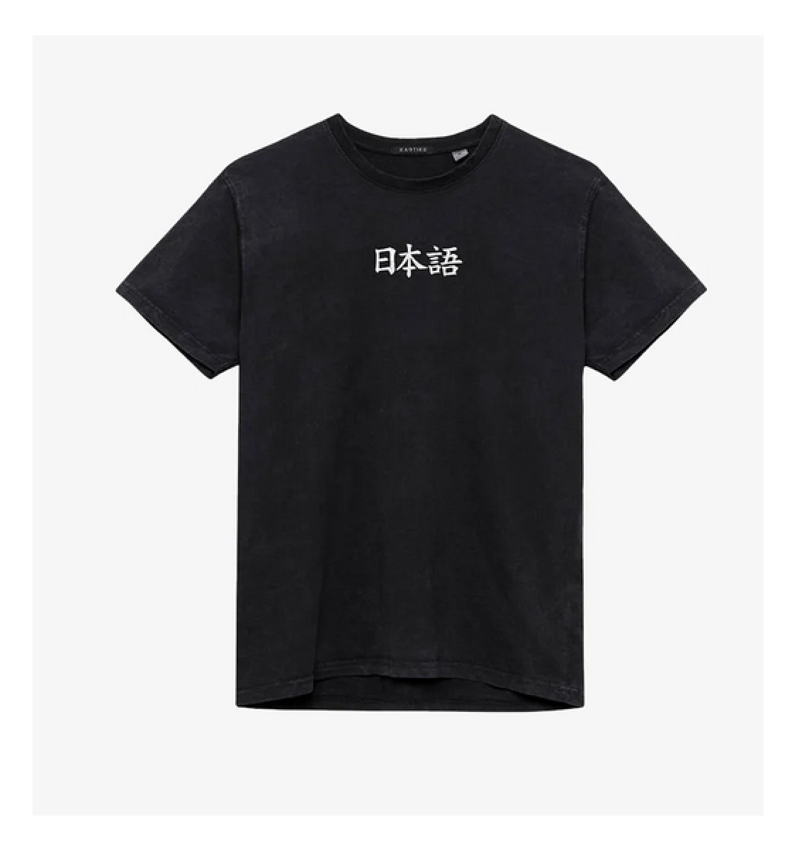 Black Kaotiko t-shirt with short sleeves, small print on the chest and large print on the back.