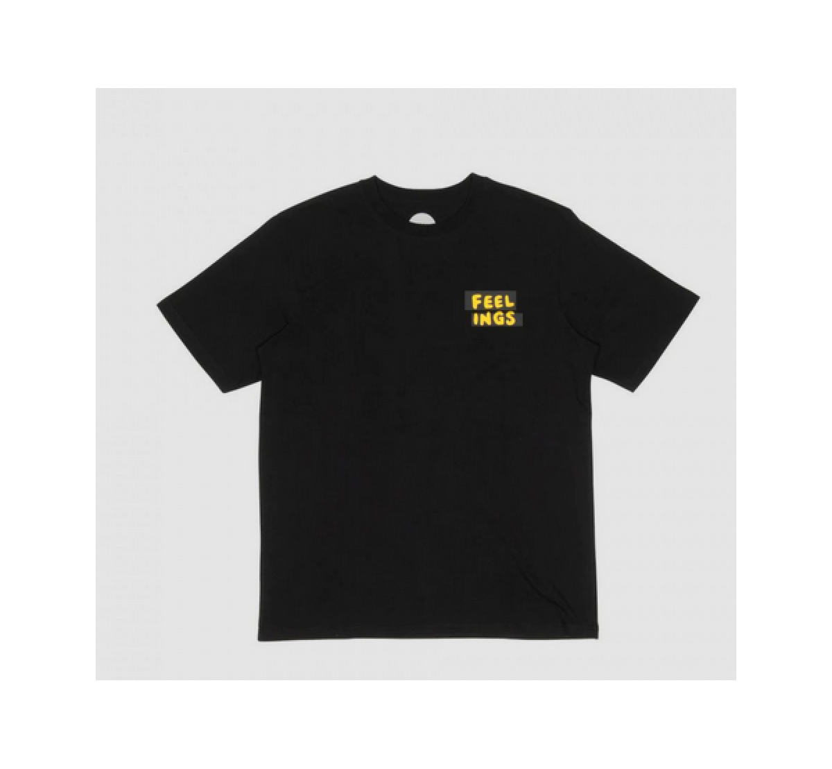 And Feelings black t-shirt with short sleeves, a small print on the left front and a large print on the back.