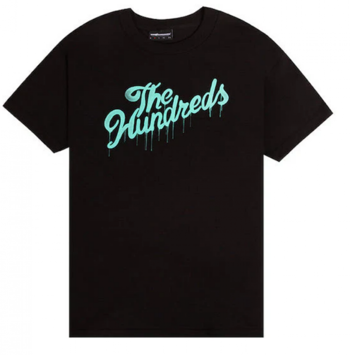Black t-shirt by The Hundreds with short sleeves, a large print on the chest and a logo behind the neck.
