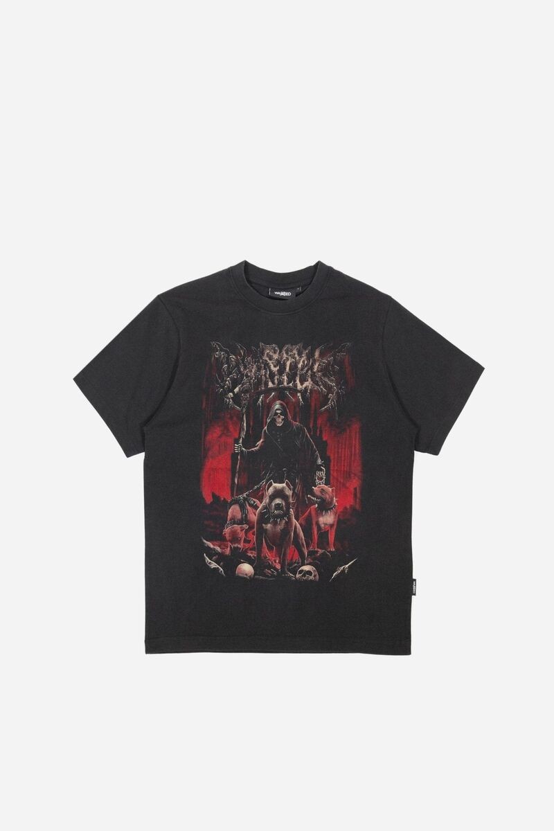 The Hell Gate t-shirt is made of cotton jersey and has a screen-printed graphic on the front and back.Composition: 100% cotton / weight 180gsmSizes chartSMLXLWidth54cm56cm58cm60cmLength73cm74cm75cm76c... full description