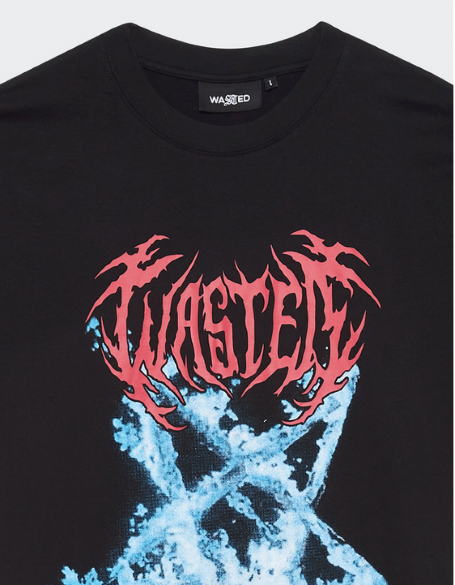 Black Wasted Paris t-shirt with short sleeves and a large print on the chest.