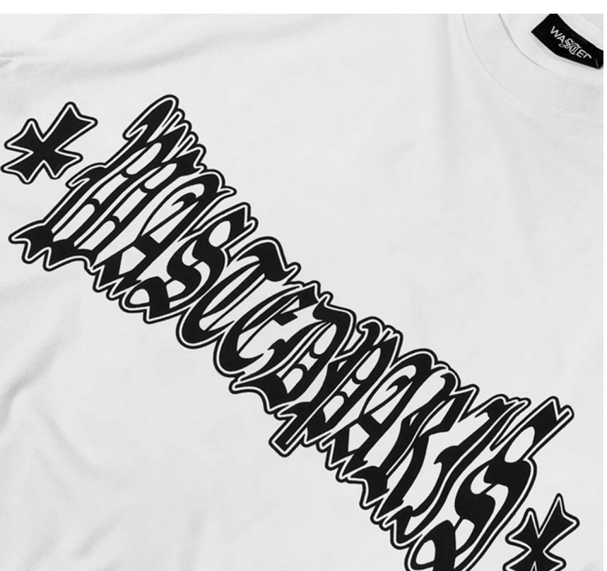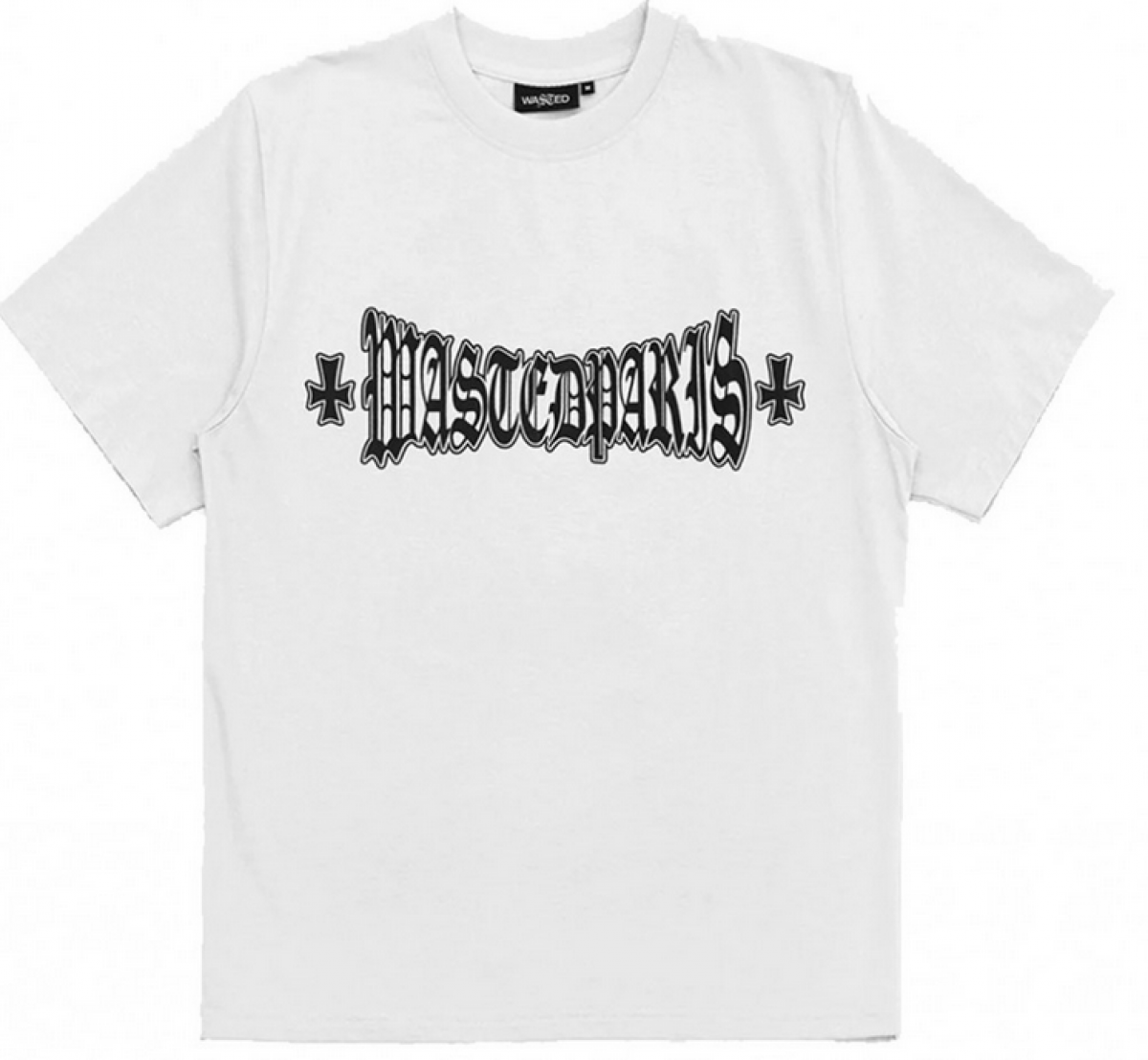 White Wasted Paris t-shirt with short sleeves and a large black print on the chest.