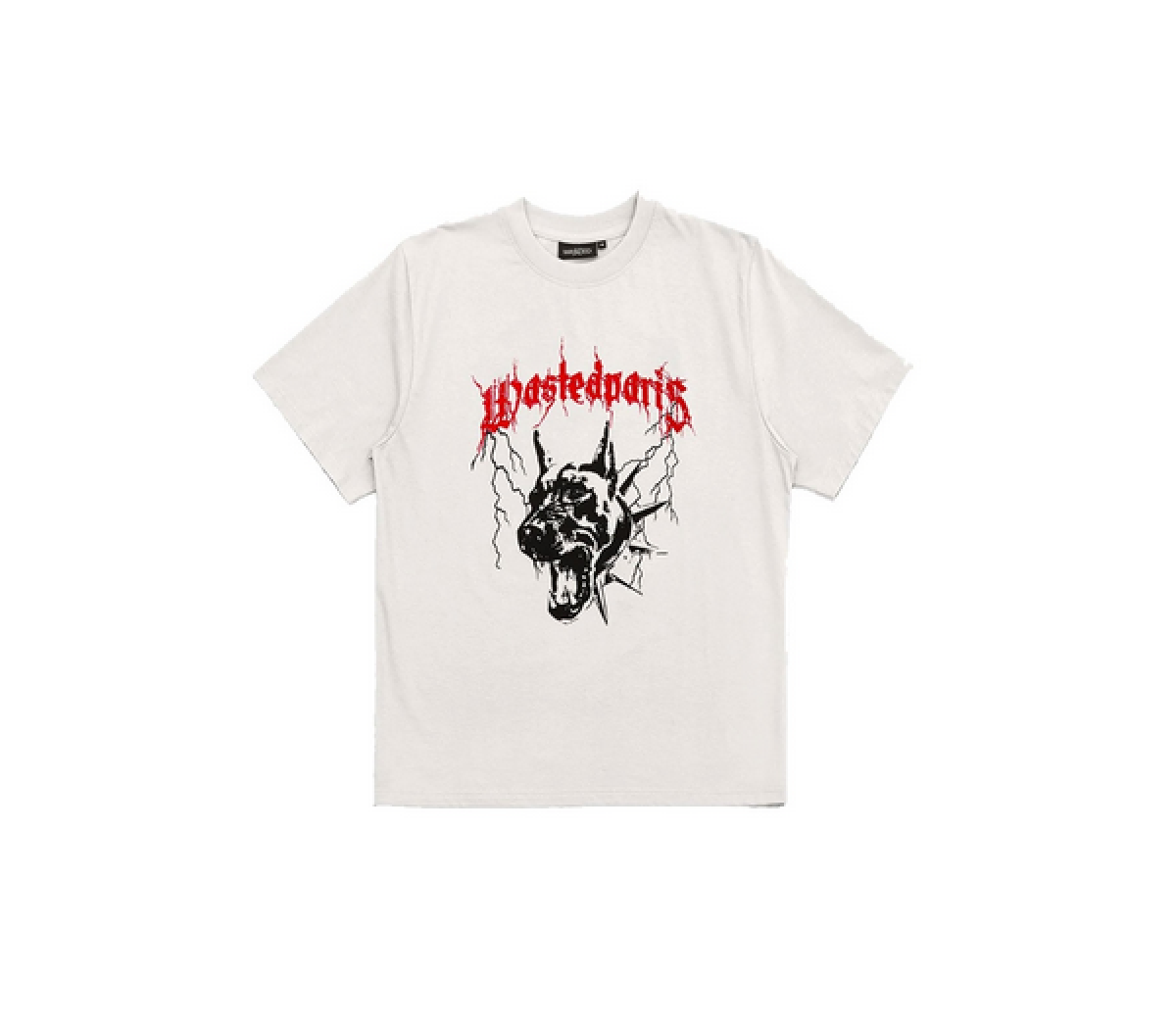 White Wasted Paris t-shirt with short sleeves and a large print on the chest.Composition: 100% cotton / weight 180gsmSizes chartSMLXLWidth54cm56cm58cm60cmLength73cm74cm75cm76cmSleeve lenght25cm25,5cm2... full description