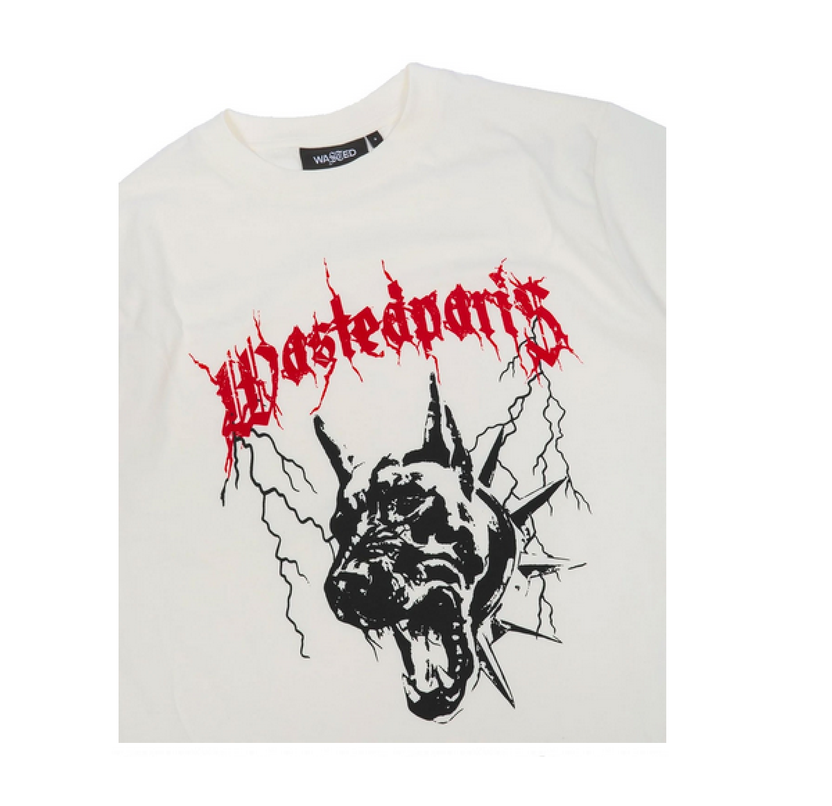 White Wasted Paris t-shirt with short sleeves and a large print on the chest.