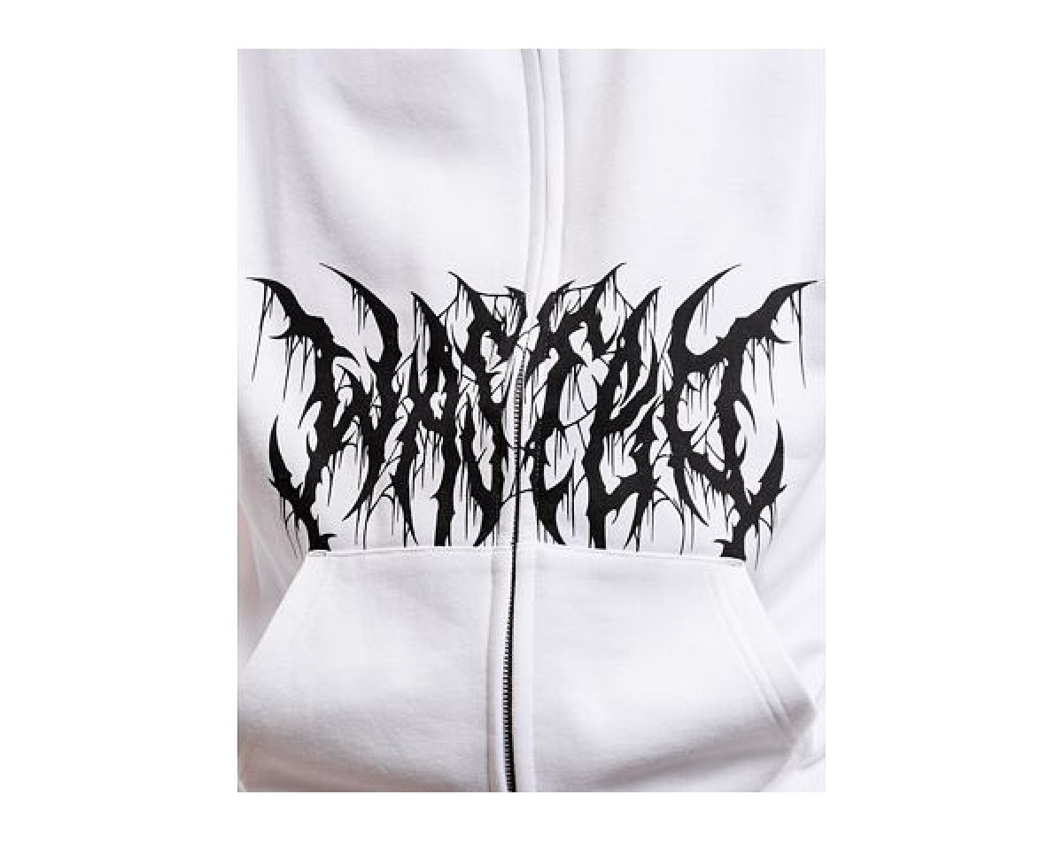 mikina s kapucí Full Zip Blitz je vyrobena ze silného fleecu. Má volný střih a zip, který umožňuje zapínání celé kapuce. Zobrazuje sítotiskové umělecké dílo na přední straně a na předku a také sítotiskové umělecké dílo s tepelně zatavenými kamínky na zadní straně